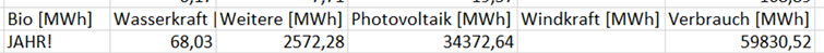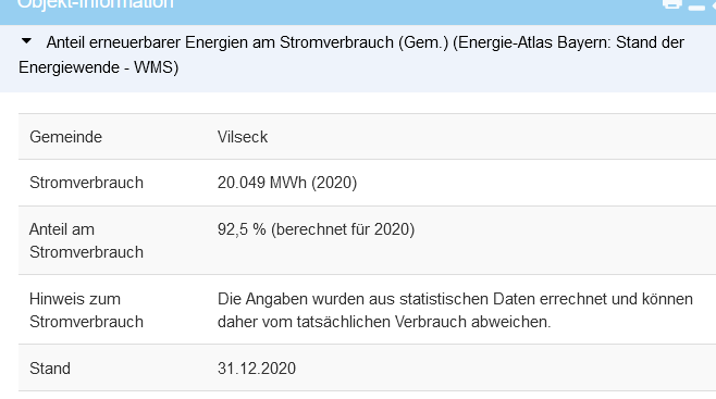 Anmerkung dazu: der ausgewiesene Stromverbrauch (2020) von 20,048 MWh weicht stark ab vom tatsächlichen Stromverbrauch (2022) laut dem Energiemonitor des Bayernwerkes: 59,830 MWh!